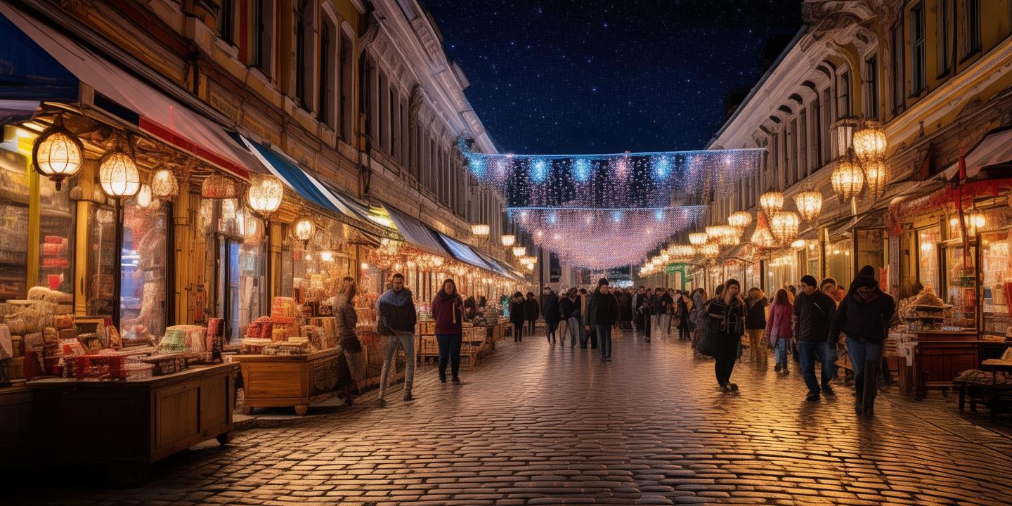 夜幕降临,华灯初上,中央大街的俄式风情夜集市热闹非凡。这里汇集了来自俄罗斯、乌克兰等国家的特色商品,如精美的工艺品、美味的面包、醇香的伏特加等。夜市摊位上,摊主们热情地向游客介绍商品,游客们则沉浸在浓厚的异国风情中,选购着自己心仪的物品。